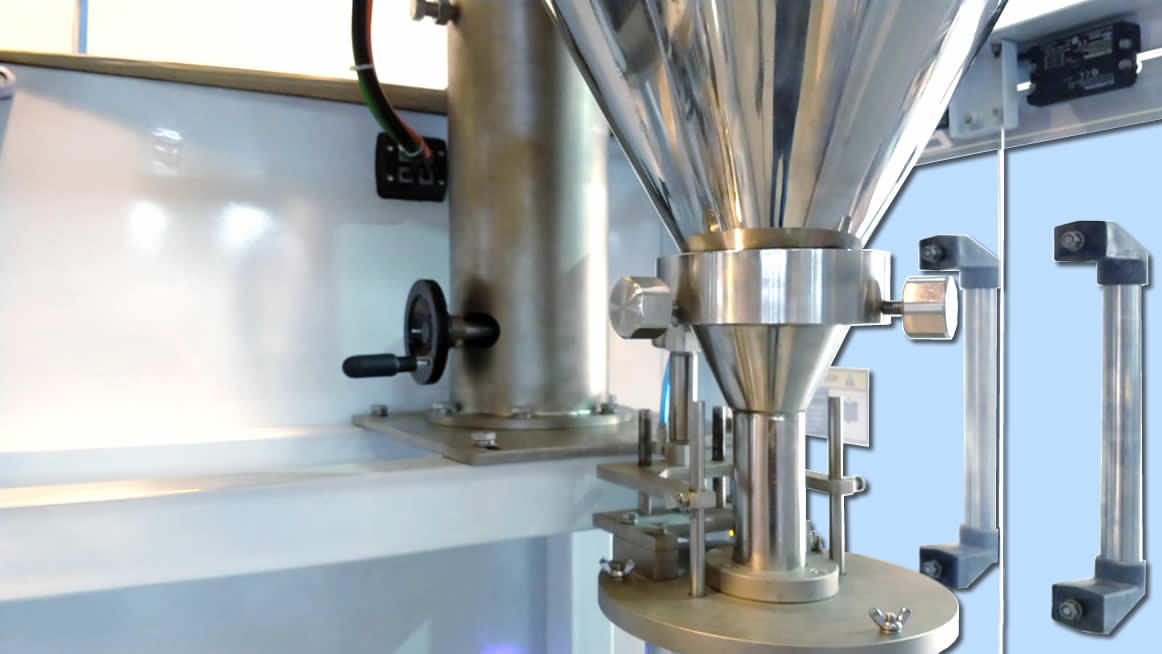 Sistema de cambio de dosificador ultrarrápido, realizado mediante guías deslizantes.